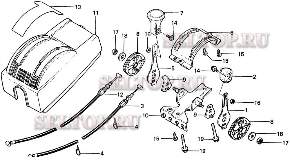 Рычаг дроссельной заслонки (s тип), тросик дросселя (s тип) для Honda HR21K1 SXA, взрыв-схема: