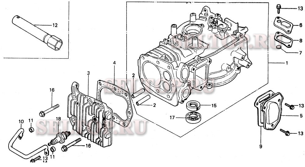 Головка цилиндра, цилиндр для Honda HR21K2 SXAM, взрыв-схема: