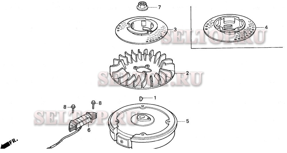 Маховик для Honda HR215K1 HXA, взрыв-схема: