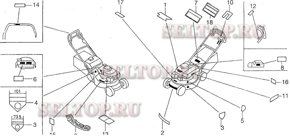 Этикетки для Honda HR215K1 SXA, взрыв-схема: