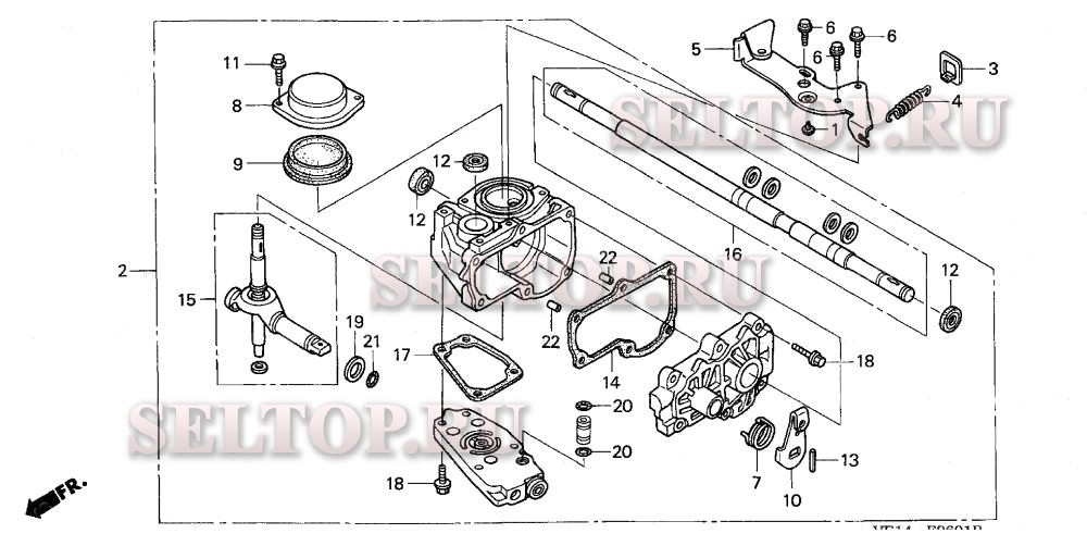 Редуктор (hxa) для Honda HRB215K3 HXA/A, взрыв-схема: