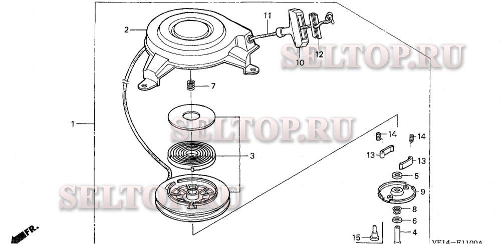Ручной стартер для Honda HRB215K3 HXA/A, взрыв-схема: