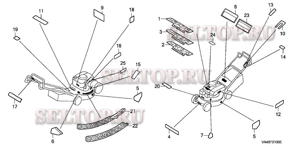 Этикетки для Honda HRC216 SXA, взрыв-схема: