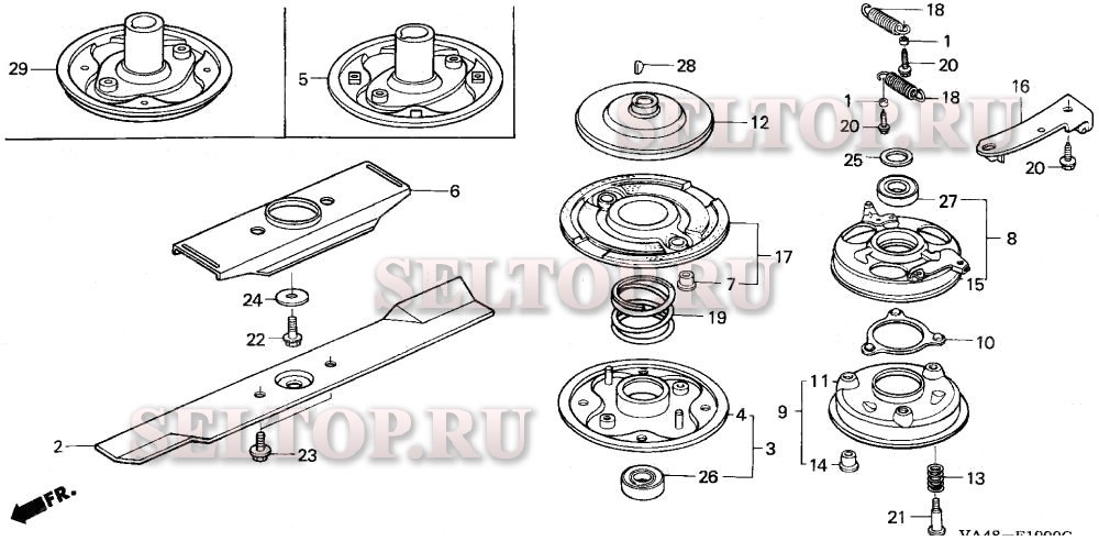 Узел режущего ножа для Honda HRC216K1 HXA, взрыв-схема: