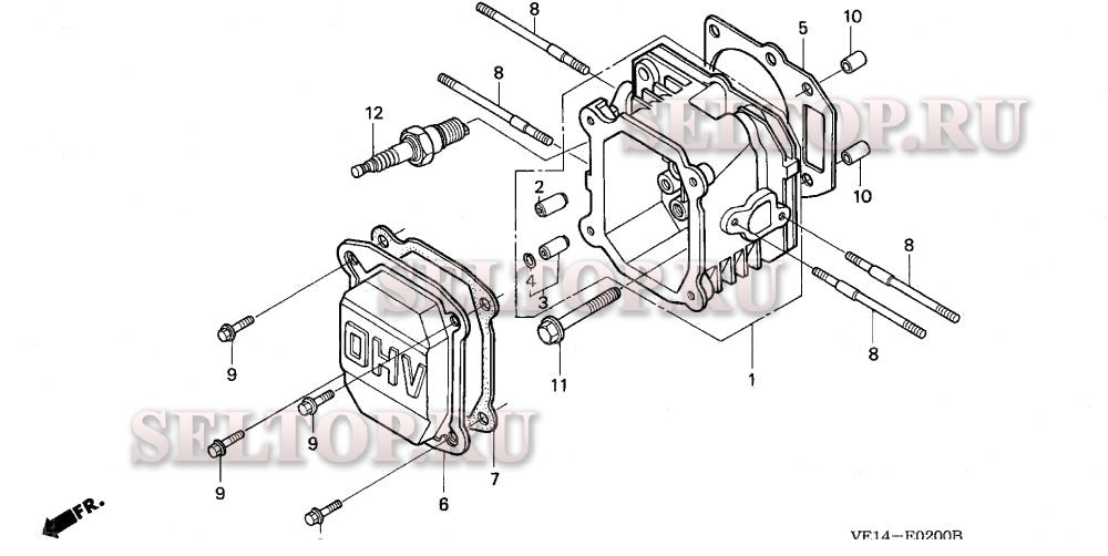 Головка цилиндра для Honda HRM215 PXA, взрыв-схема: