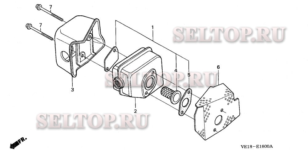 Глушитель для Honda HRM215K4 PDA, взрыв-схема: