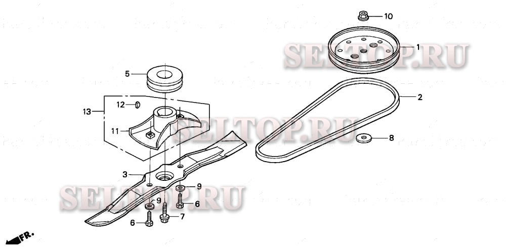 Узел режущего ножа, ведомый шкив для Honda HRS216K2 PDAA, взрыв-схема: