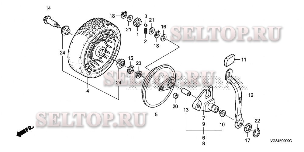 Заднее колесо для Honda HRS216K5 PKAA, взрыв-схема: