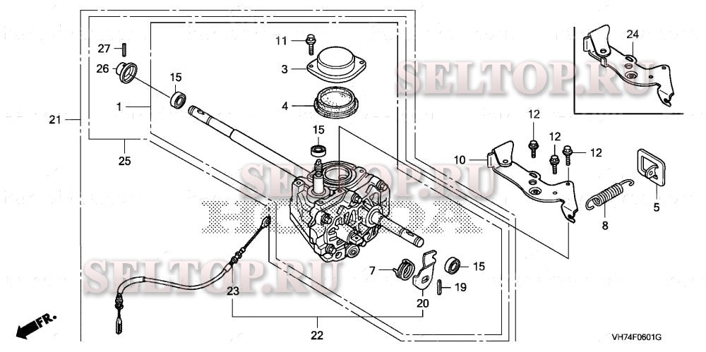 Редуктор (2) для Honda HRX217K1 HMA, взрыв-схема: