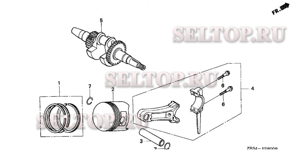 Поршень, коленвал для Honda EB2500XK1 AG/A, взрыв-схема: