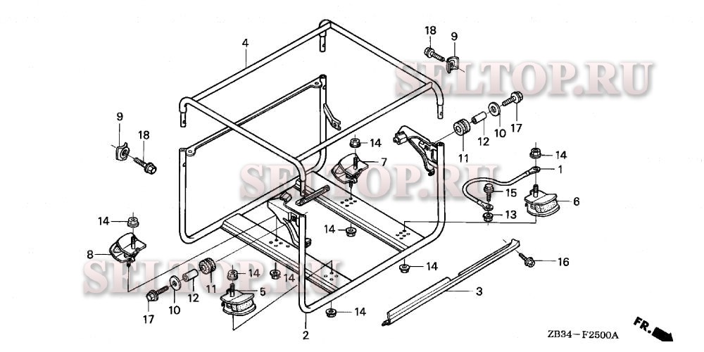 Рама для Honda EB2500XK1 AG/B, взрыв-схема: