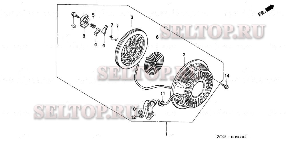 Ручной стартер для Honda EB5000XK1 AG/B, взрыв-схема: