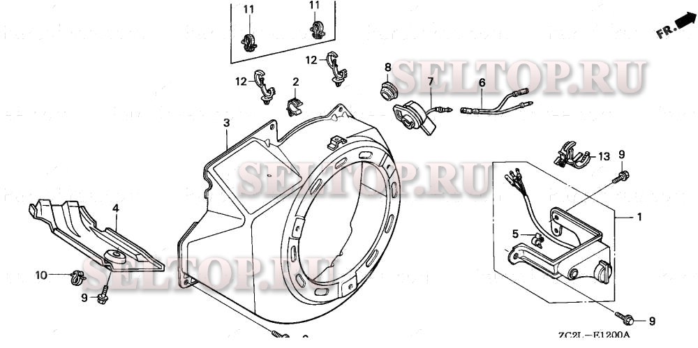 Кожух вентилятора для Honda EB5000XK1 AG/C, взрыв-схема: