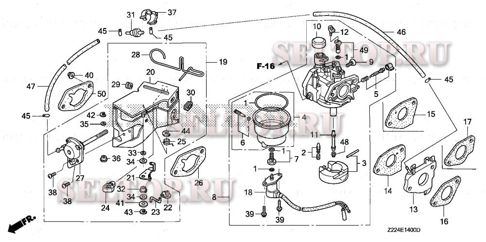 Карбюратор (1) для Honda EB6500X AT, взрыв-схема: