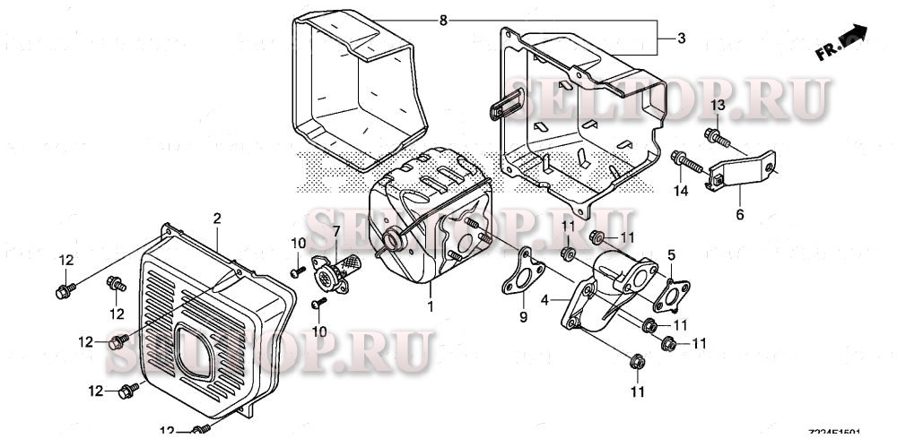 Глушитель (2) для Honda EB6500X1 AT, взрыв-схема: