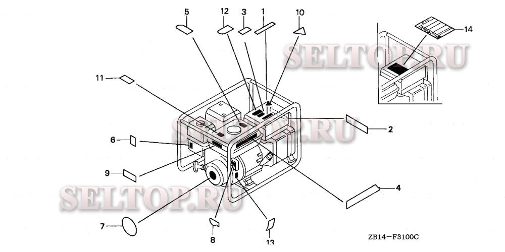 Этикетки для Honda EG2500XK1 A/D, взрыв-схема: