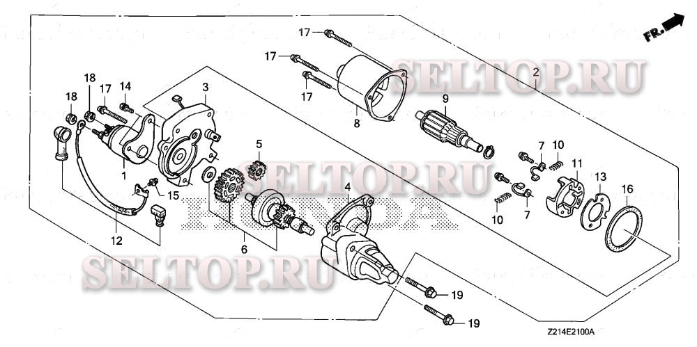 Стартер (em3800sx) для Honda EM3800SX A, взрыв-схема: