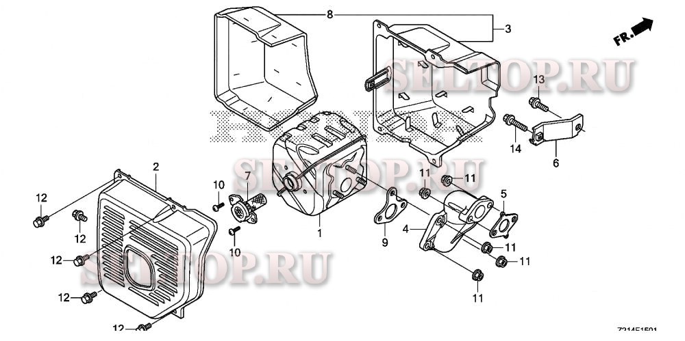 Глушитель (2) для Honda EM4000SX AT1, взрыв-схема: