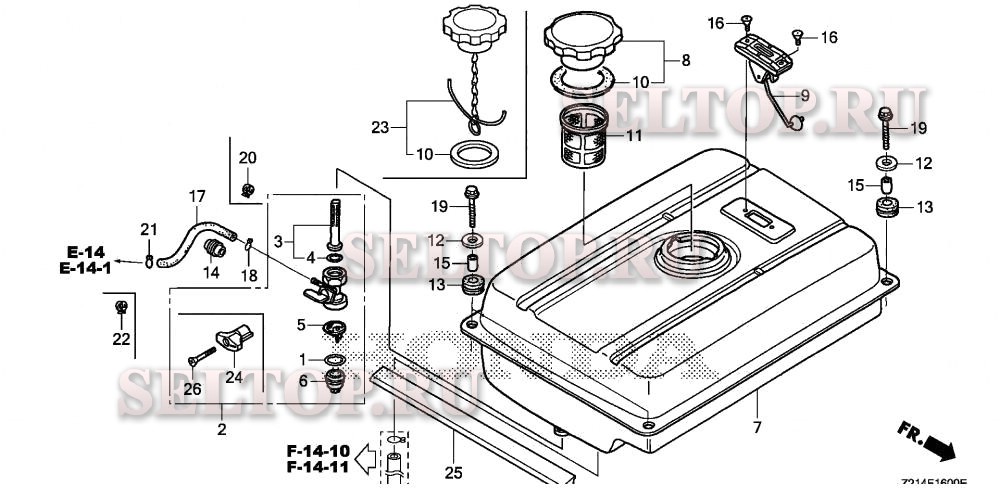 Топливный бак для Honda EM4000SX AT1, взрыв-схема: