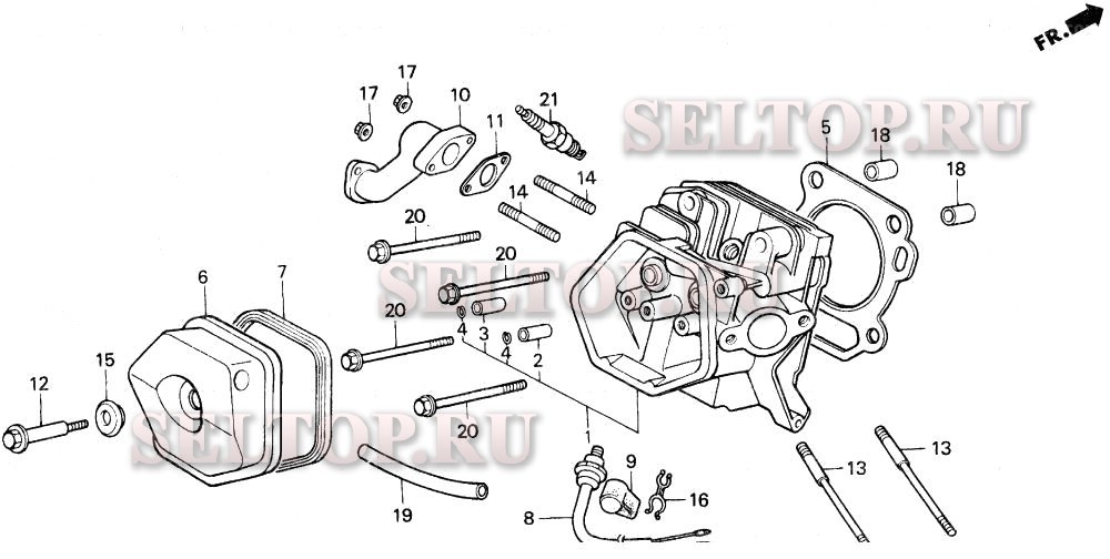 Головка цилиндра для Honda EM5000X A, взрыв-схема: