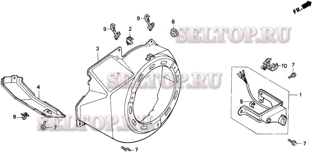 Кожух вентилятора для Honda EM5000X A, взрыв-схема: