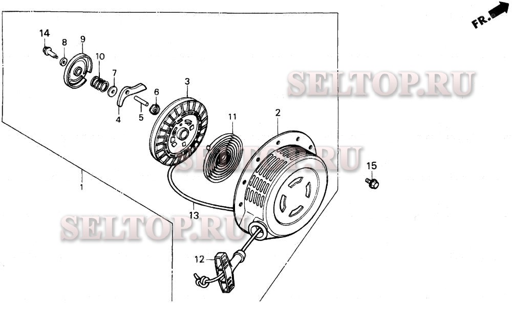 Ручной стартер для Honda EM5000X A, взрыв-схема: