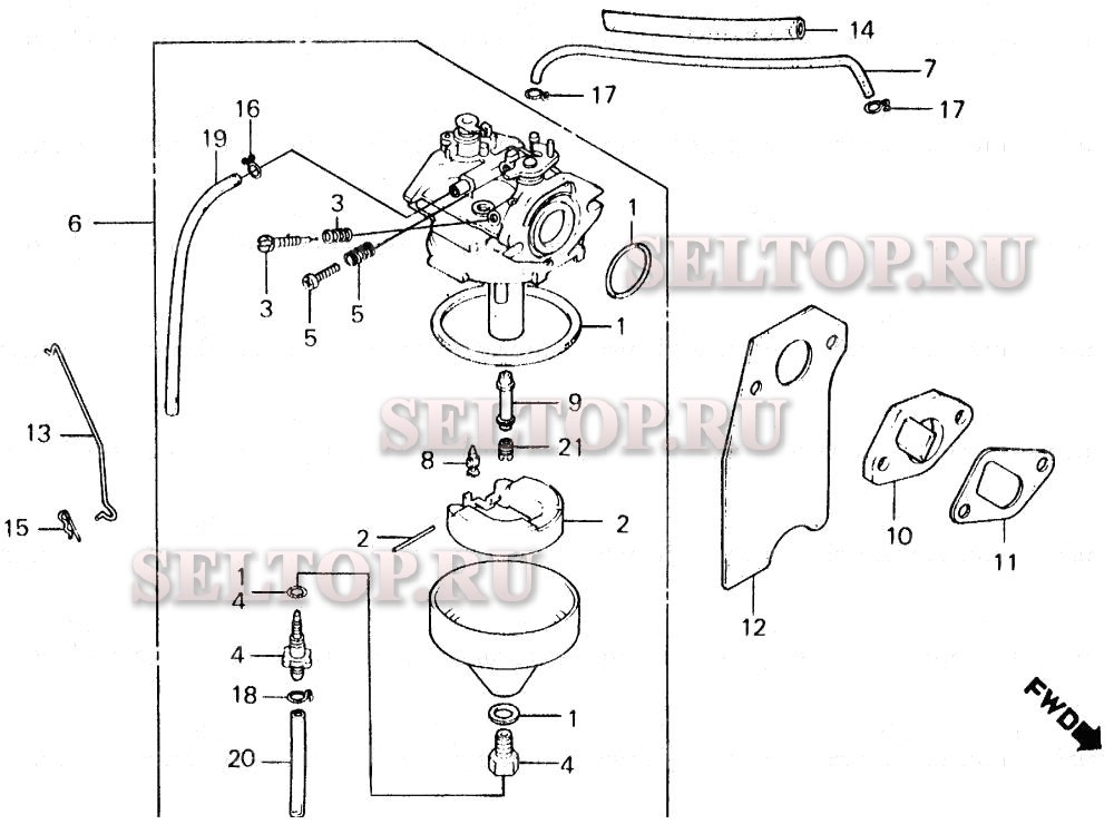 Карбюратор для Honda EM500K1 A, взрыв-схема: