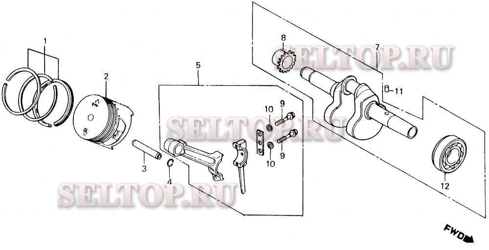 Коленвал, поршень для Honda EM500K1 A, взрыв-схема: