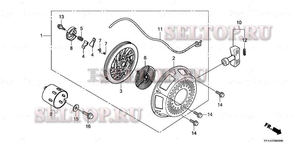 Ручной стартер для Honda EM7000IS A3, взрыв-схема: