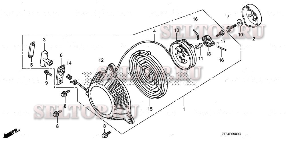 Ручной стартер для Honda EU1000I A2/A, взрыв-схема: