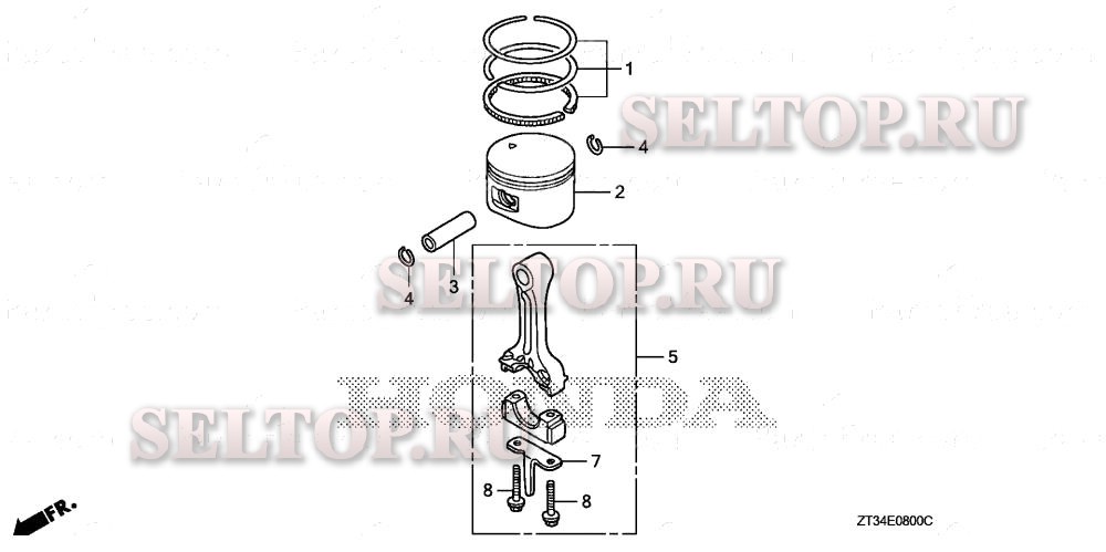 Поршень, шатун для Honda EU1000IK1 AN, взрыв-схема: