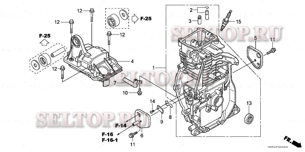 Блок цилиндров для Honda EU2000I A/A, взрыв-схема:
