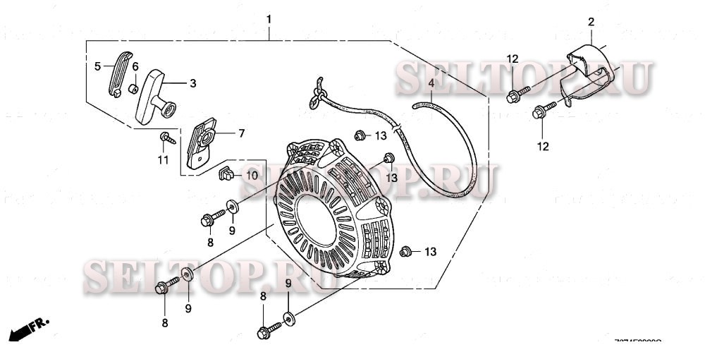 Ручной стартер для Honda EU2000I A/A, взрыв-схема: