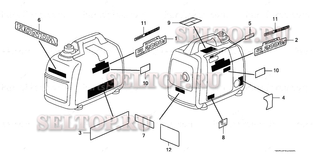 Этикетки для Honda EU2000I AN, взрыв-схема: