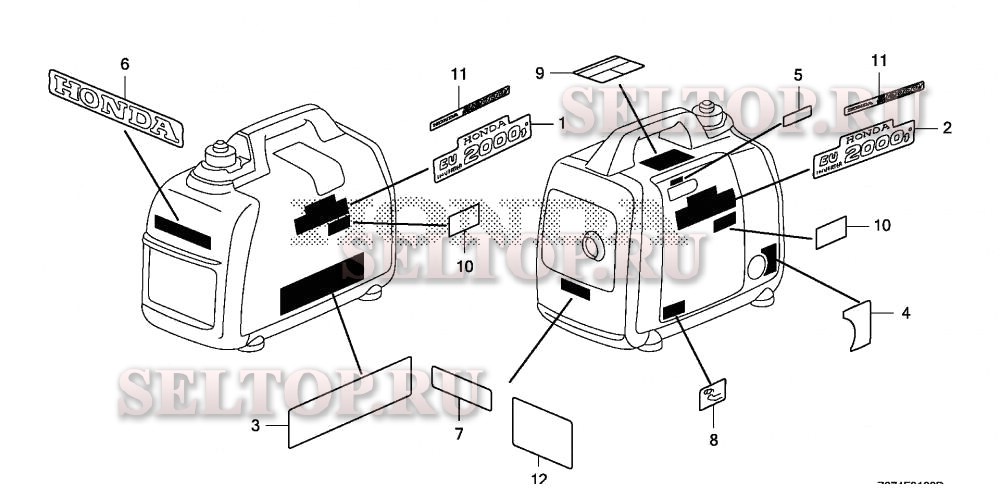 Этикетки для Honda EU2000IK1 AC2, взрыв-схема: