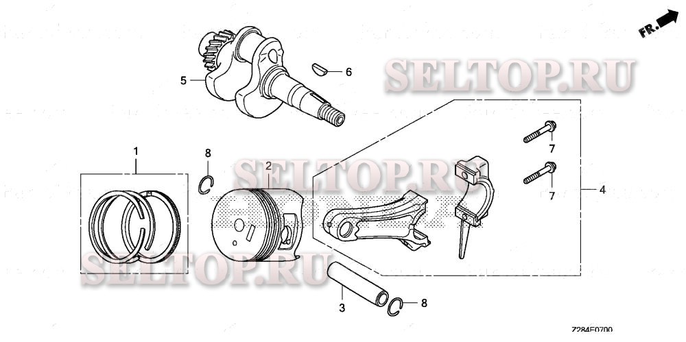 Поршень, коленвал для Honda EU3000I AN8, взрыв-схема: