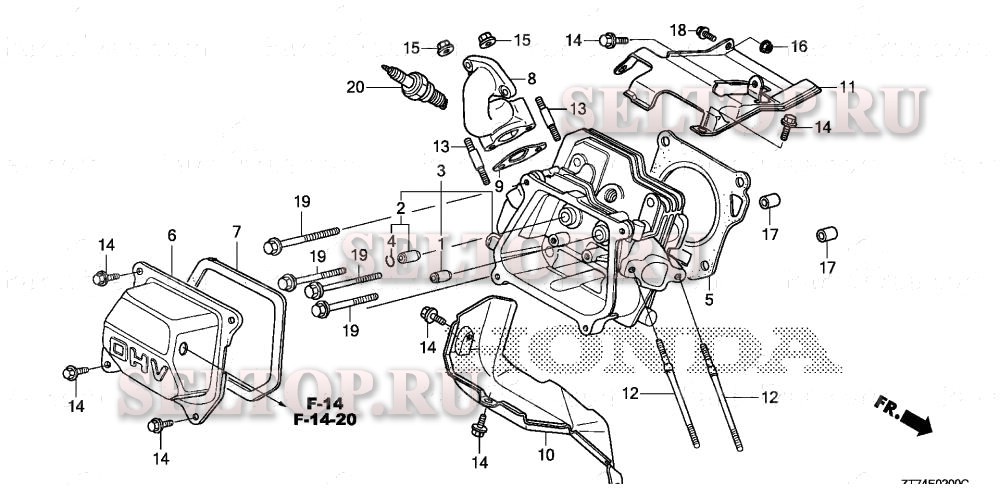 Головка цилиндра для Honda EU3000IS A/A, взрыв-схема: