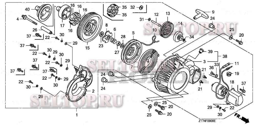 Ручной стартер для Honda EU3000IS A/A, взрыв-схема: