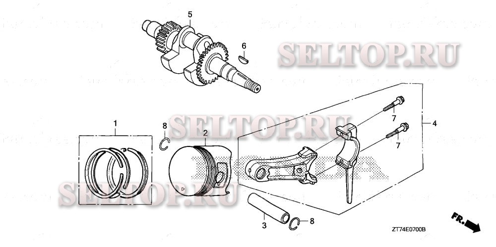 Поршень, коленвал для Honda EU3000IS1 A, взрыв-схема: