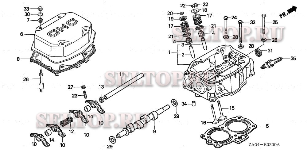 Головка цилиндра для Honda EX5500K1 A/B, взрыв-схема: