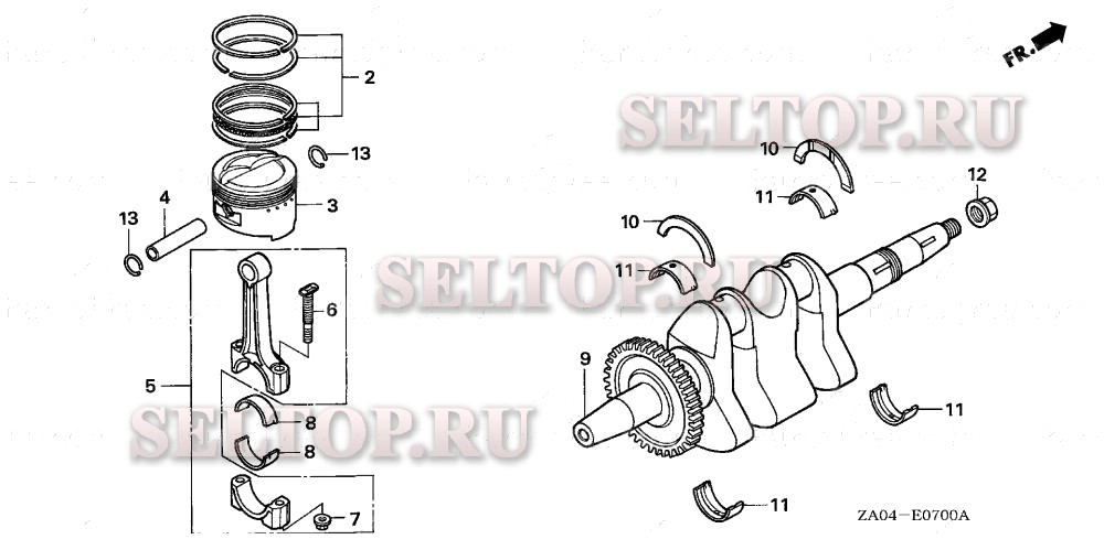 Коленвал, поршень для Honda EX5500K1 A/B, взрыв-схема: