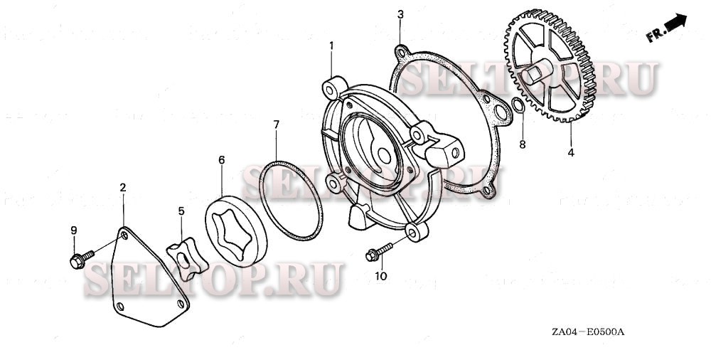 Масляный насос для Honda EX5500K1 A/B, взрыв-схема: