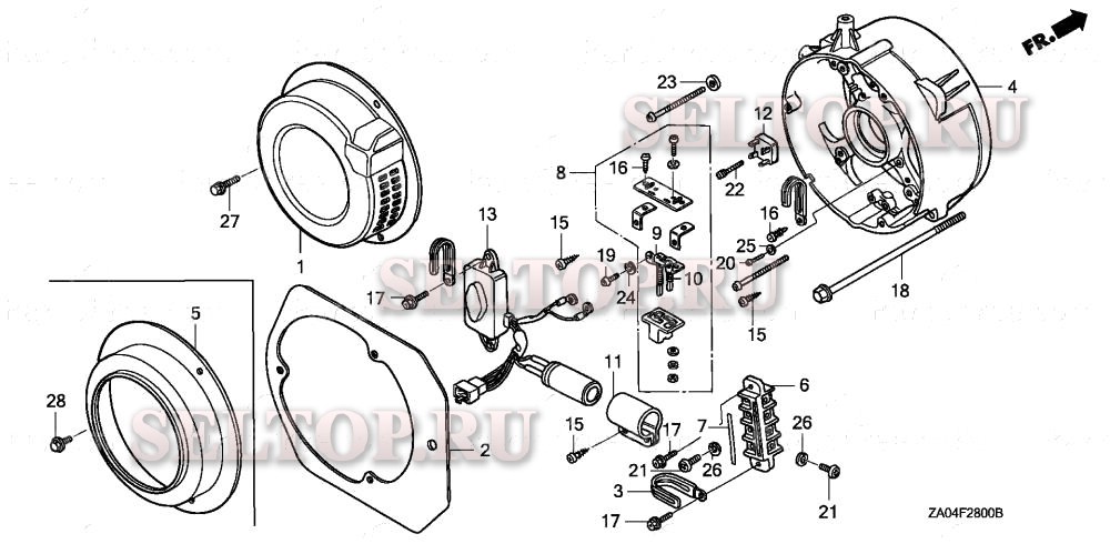Задний корпус (1) для Honda EX5500K1 A/B, взрыв-схема: