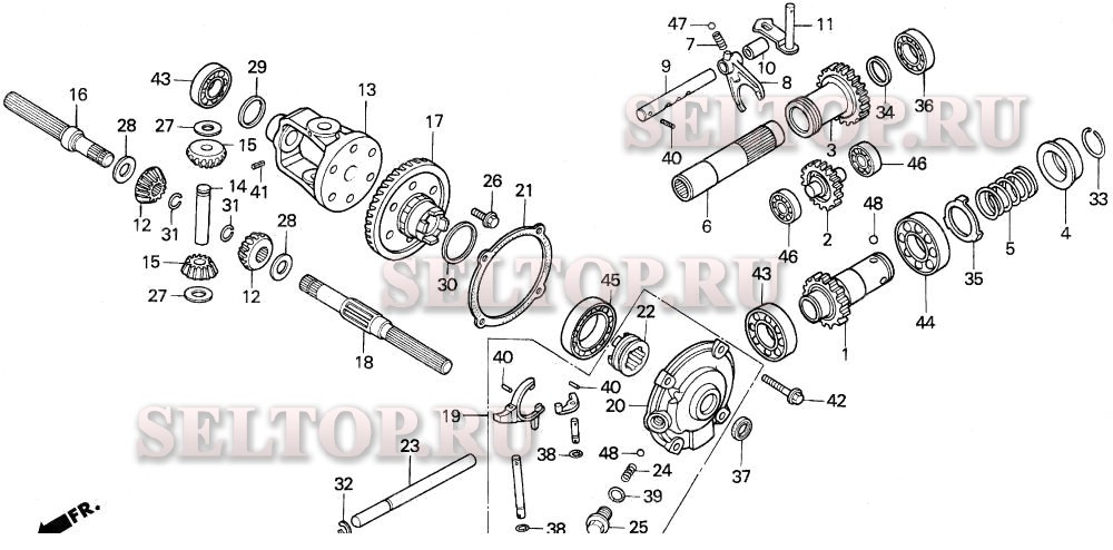 Задний дифференциал для Honda H5013 A4/A, взрыв-схема: