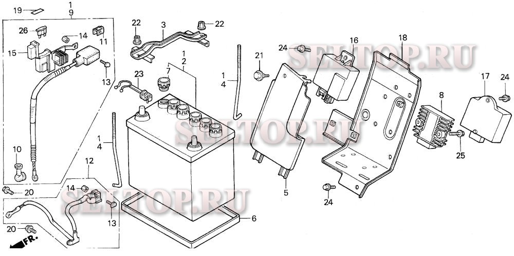 Аккумулятор для Honda H5013 A4/C, взрыв-схема: