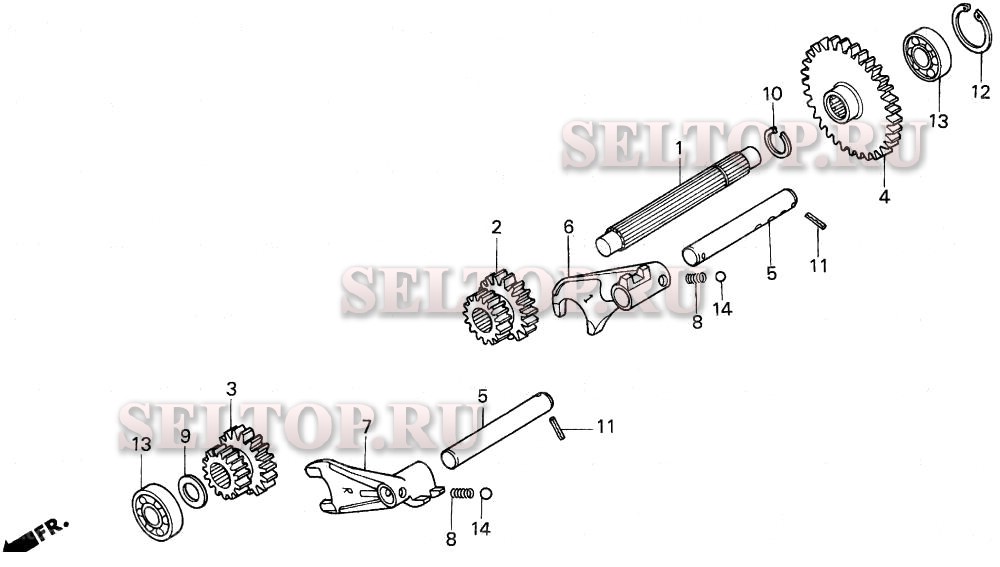 Верхний промежуточный вал для Honda H5013 AC2/B, взрыв-схема: