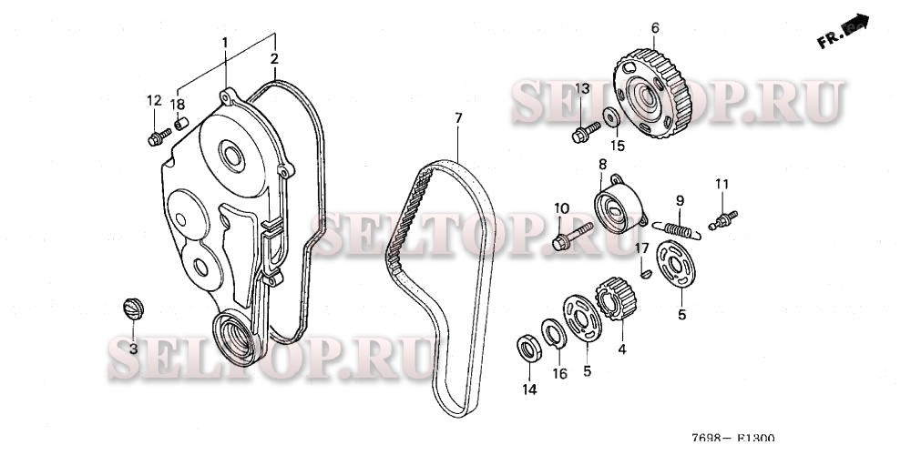 Зубчатый ремень привода для Honda H5518 A4/B, взрыв-схема: