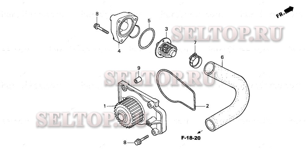 Водяной насос для Honda H5518 AC2/A, взрыв-схема: