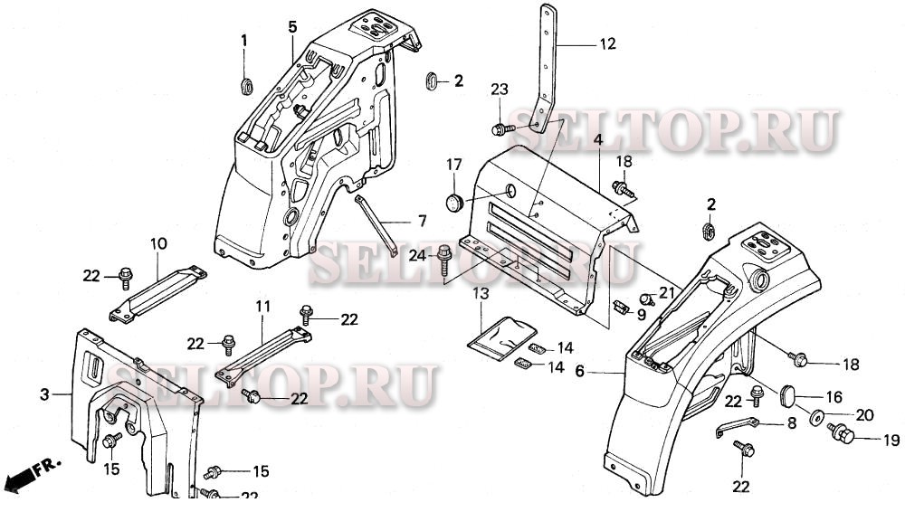 Задний ограждающий щит для Honda H6522 A4, взрыв-схема: