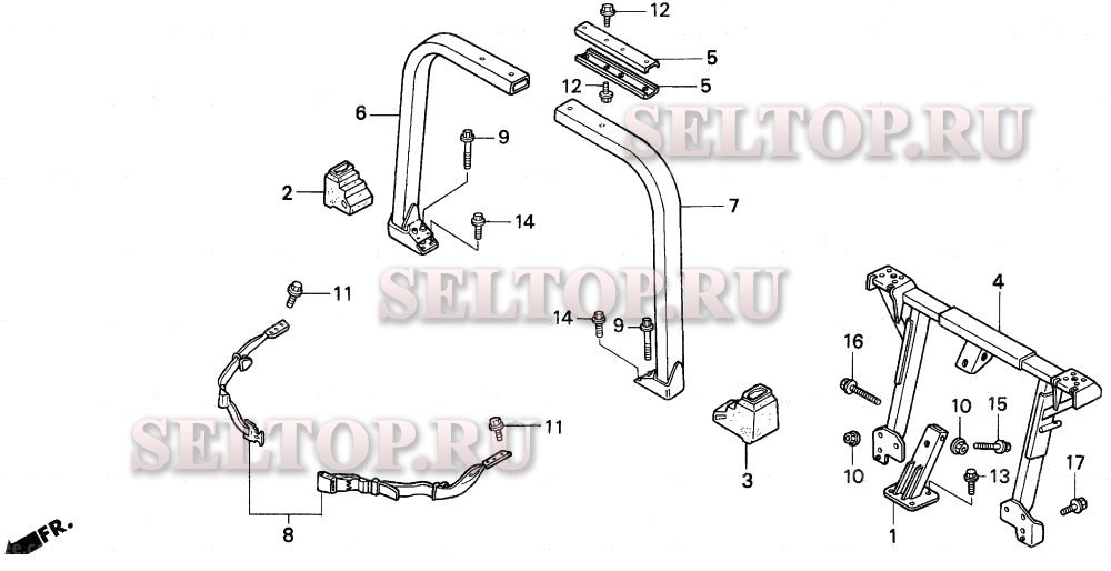 Защита опрокидывания для Honda H6522 A4, взрыв-схема: